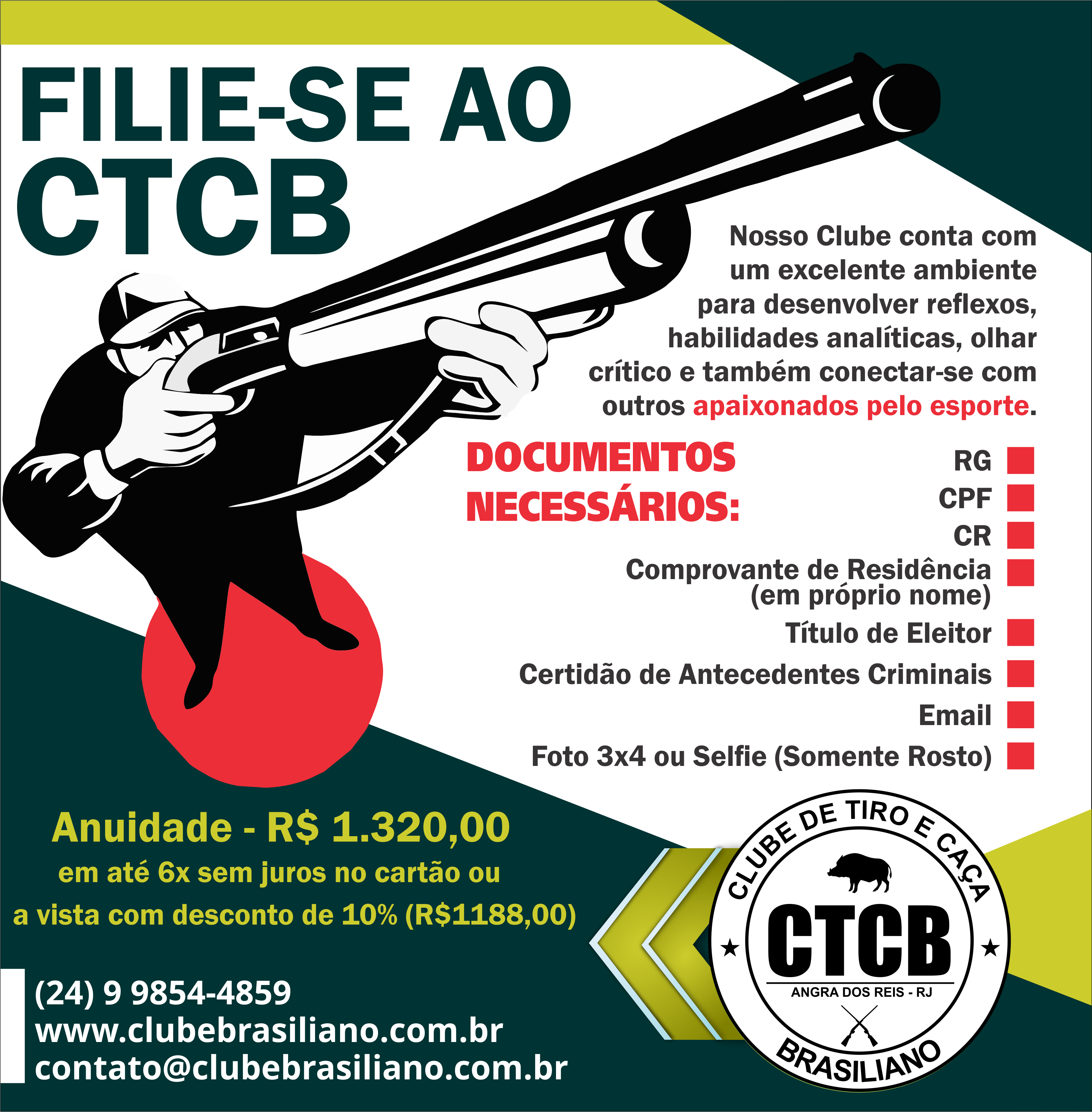 Solicite sua Ficha de Inscrição e entre para a EQUIPE DO CLUBE DE TIRO E CAÇA BRASILIANO.